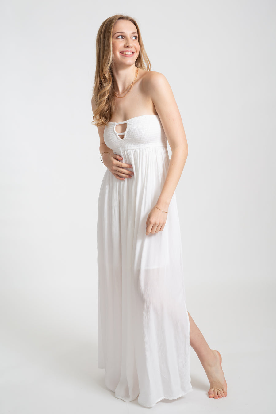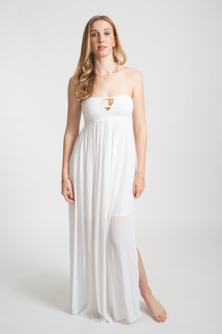 Vous ne savez pas quoi porter en tant qu'invité pour un mariage à la plage ? La robe Miami Bandeau Maxi vous gardera à l'aise et chic dans n'importe quelle chaleur de plage! Dotée de découpes coquines et d'une fente haute, cette robe longue fera tourner les têtes pour toutes les bonnes raisons !