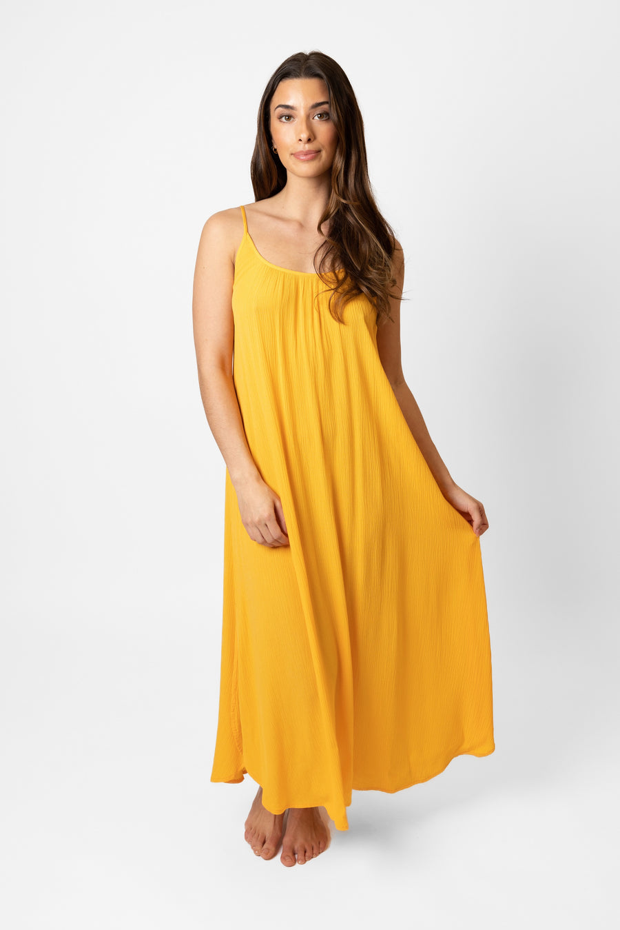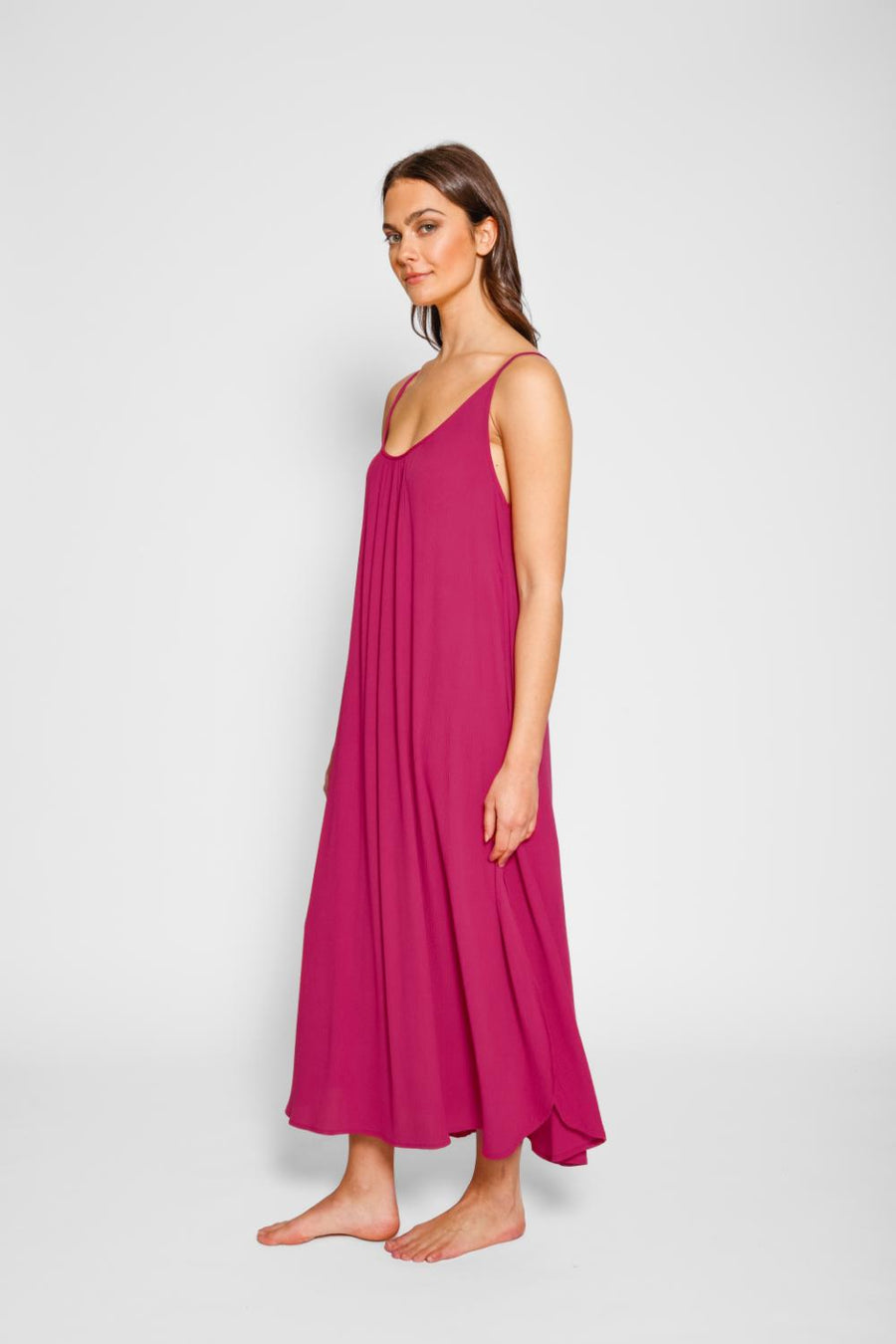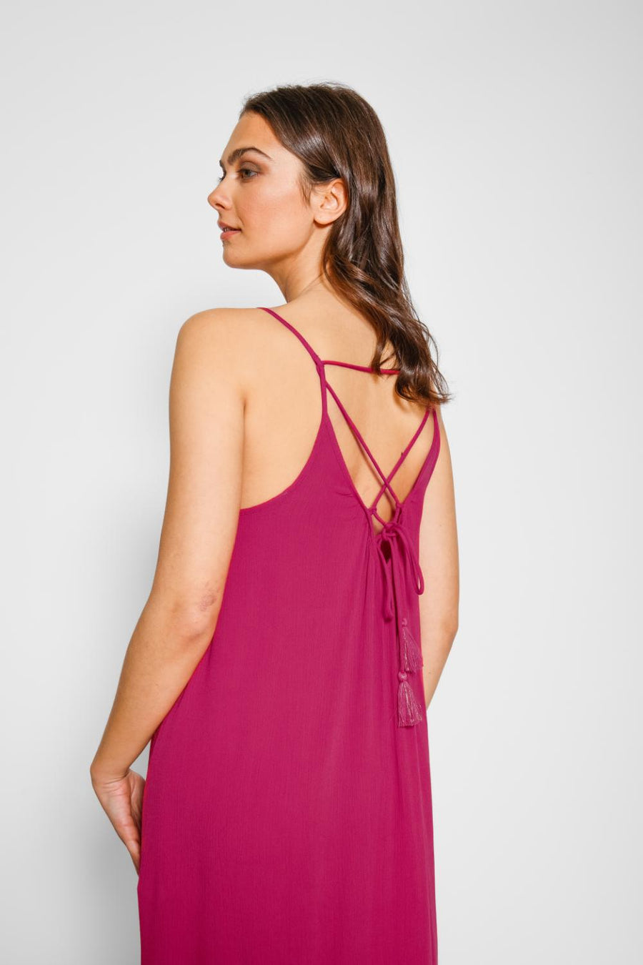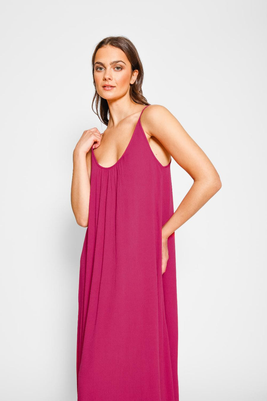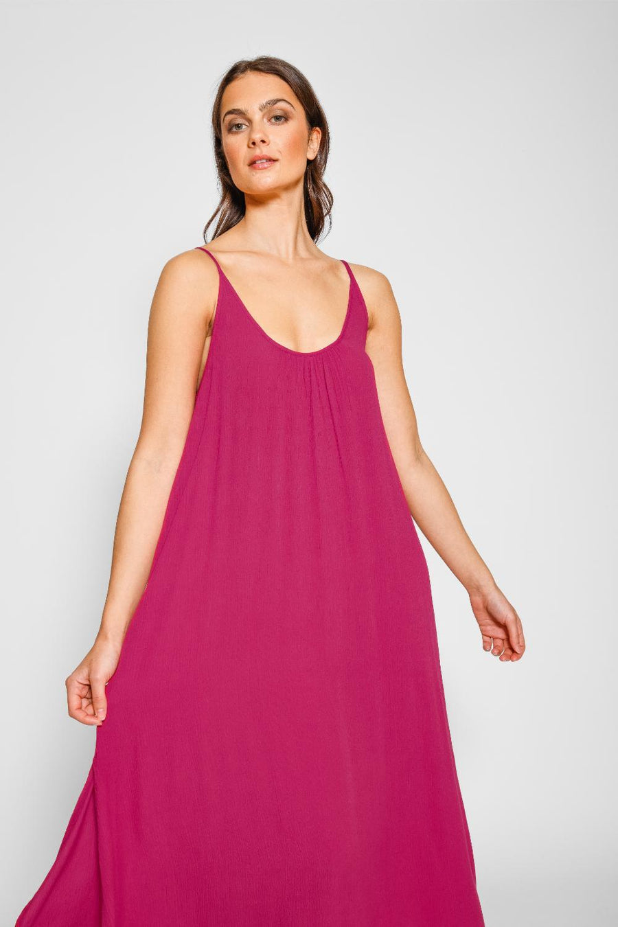Laissez parler votre look avec cette robe mi-longue à bretelles fendue sur le côté Miami ! Avec sa silhouette à bretelles, sa longueur midi et sa matière aérée, les détails délicats de cette robe feront tourner les têtes. De plus, la fente échancrée et le tissu en rayonne facile à transporter en font le choix parfait pour un look tendance et sans effort. Soyez la vie de la fête !