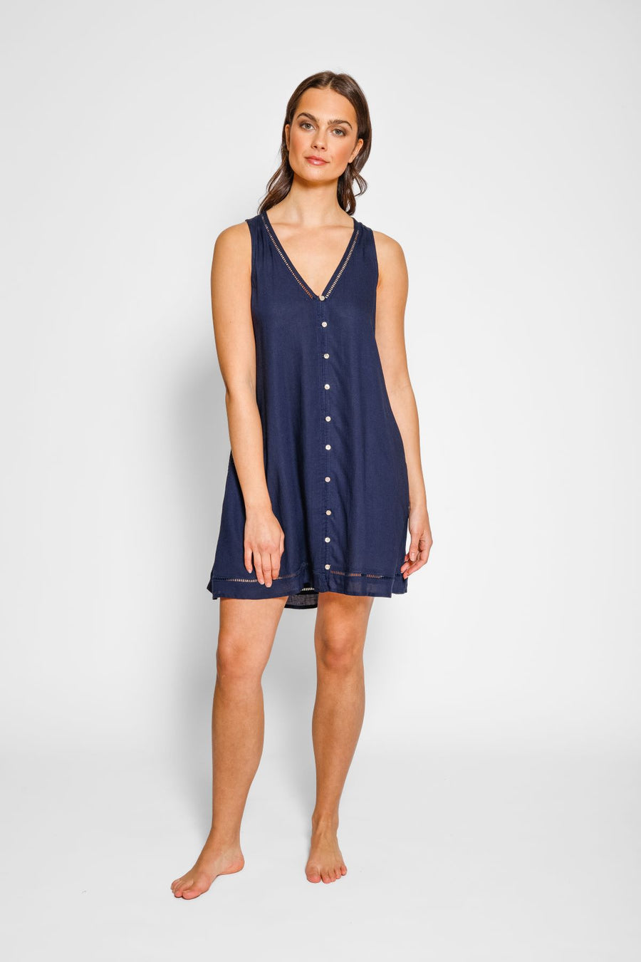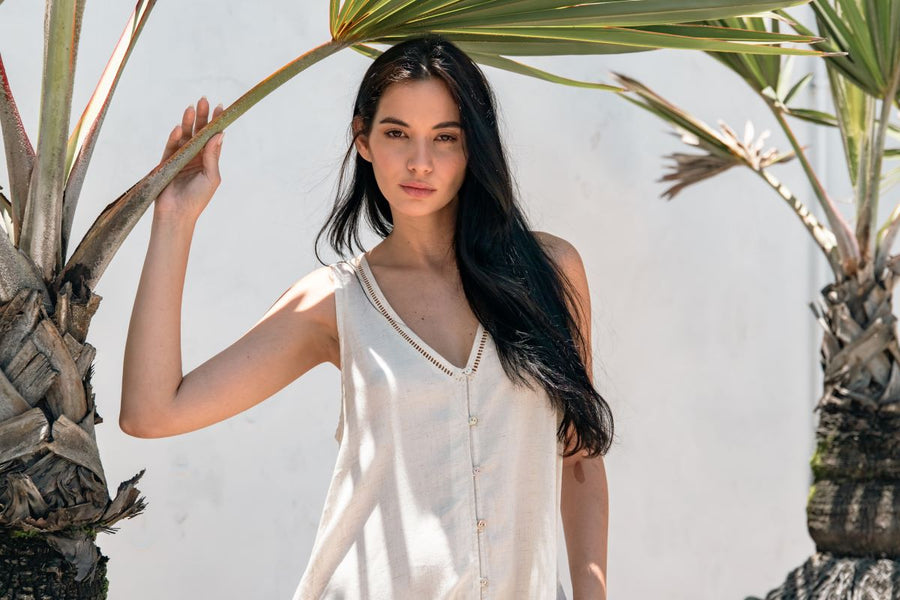 La mini-robe Capri : un ajout polyvalent à votre garde-robe. Faisant partie de la collection Capri, cette robe est confectionnée dans un tissu en mélange de lin pour une coupe parfaite. Parfaite pour un usage quotidien, elle s'habille de façon décontractée ou décontractée pour toutes les occasions. (Idéale pour une sortie décontractée en été ou une soirée en amoureux parfaite !)