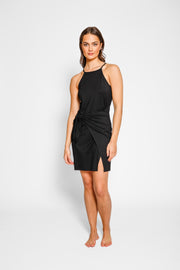 Cette robe ludique présente un col montant et une longueur mi-cuisse pour une coupe ajustée. Le lien superposé sur le devant ajoute une touche élégante, tandis que la fente sur le côté gauche ajoute un peu de style. Parfait pour une soirée ou une journée décontractée entre amis !