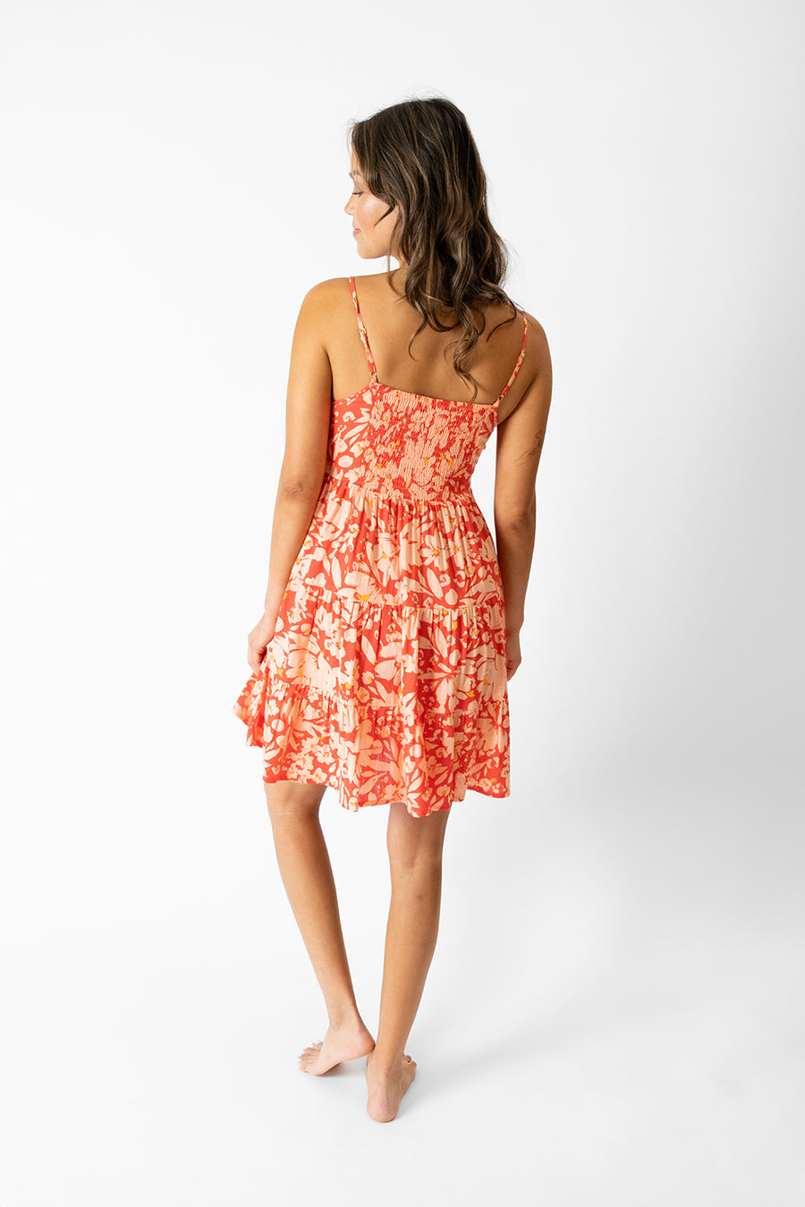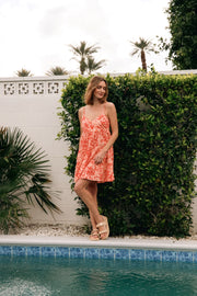 Laissez-vous porter par notre mini-robe à bretelles Valencia ! Avec son imprimé floral rose amusant et son design à volants, cette robe est parfaite pour les journées ensoleillées. Ses bretelles spaghetti réglables et ses poches ajoutent une touche pratique. Pas besoin de vous préparer, enfilez cette robe originale et ludique et c'est parti !