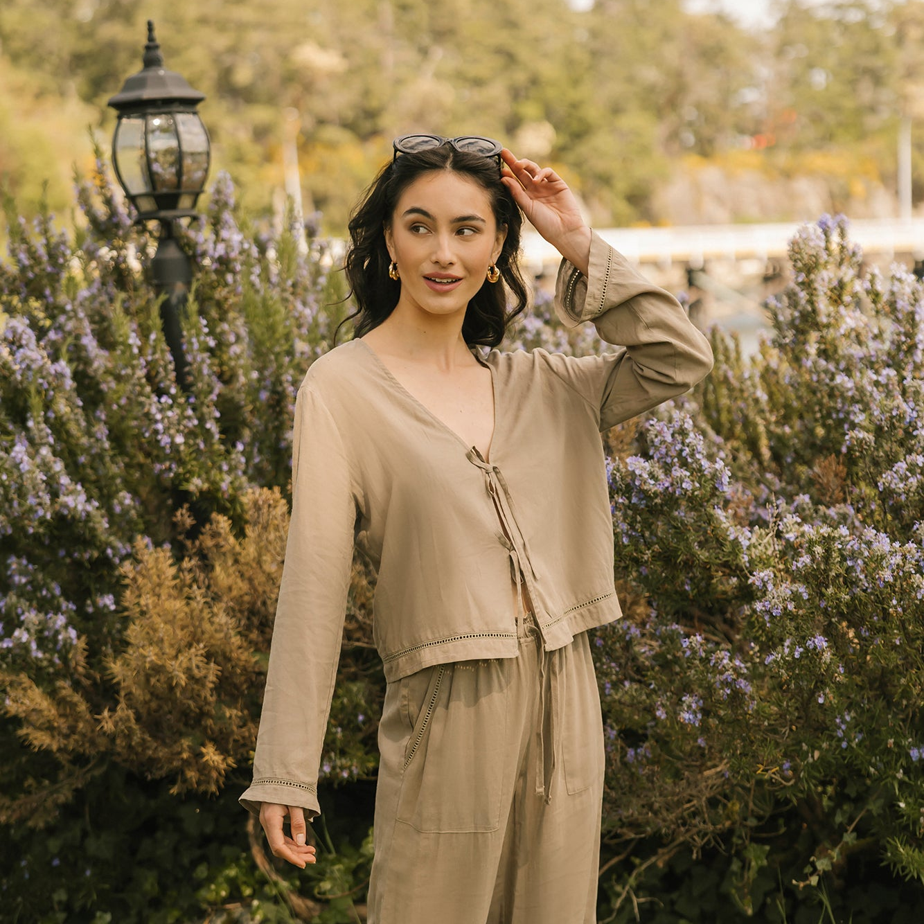 Crafted from a soft, flowy linen blend, with subtle lace details, these versatile pieces are perfect for any setting.